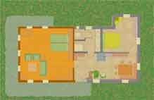 Zwei Schlafzimmer, Wohnküche, Bad/WC, rd. 70 m2 und Blumengarten.