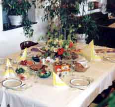 Anders als beim üblichen Hotel-Frühstück gehören dazu auch Großmutters Marmeladen und Terrinen, Hausgebackenes Brot, sowie allerlei Früchte der Saison.