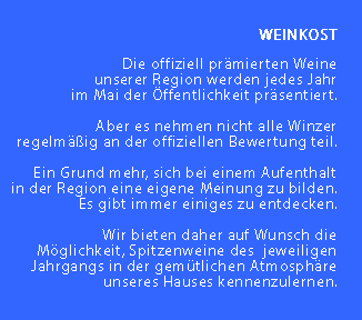Dies sind weinbäuerliche Familienbetriebe, die neben dem Ausschank ihrer Weine auch verschieden Speisen anbieten, die sie selbst herstellen.